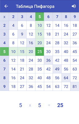 Наглядное представление таблицы умножения с голосовыми подсказками.